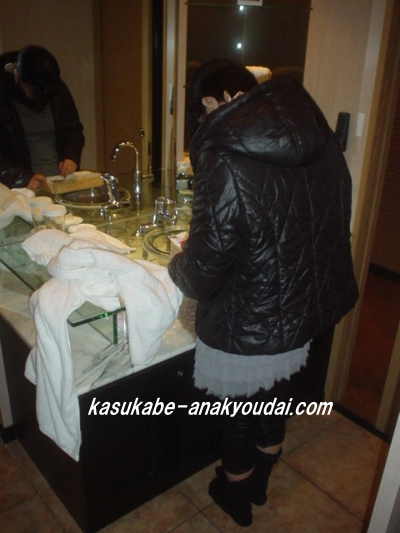 彼女も満足出来た様子を確認。とりあえず鏡の前で記念撮影です。